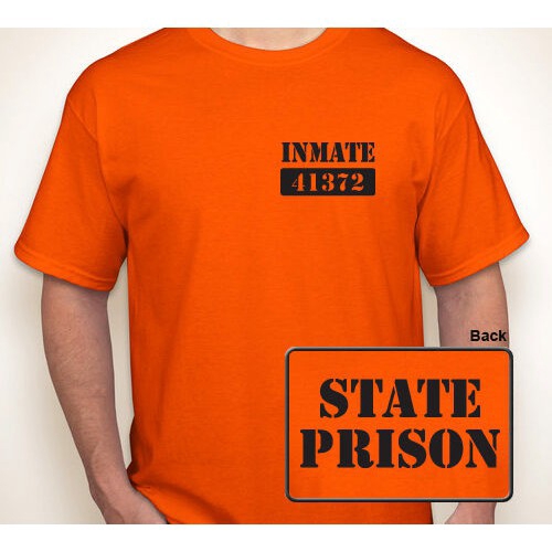 26Orange County Jail T Shirt Funny Costume Regular Fit 100 Cotton Tee. 31Prison uniforms in the United States often consist of a distinctive orange jumpsuit or scrubs with a white T-shirt underneath set to make escape more difficult as it is difficult for an escaped inmate to avoid recognition and recapture in such a distinctive attire. Fire Logo T-shirt Black 2895.
